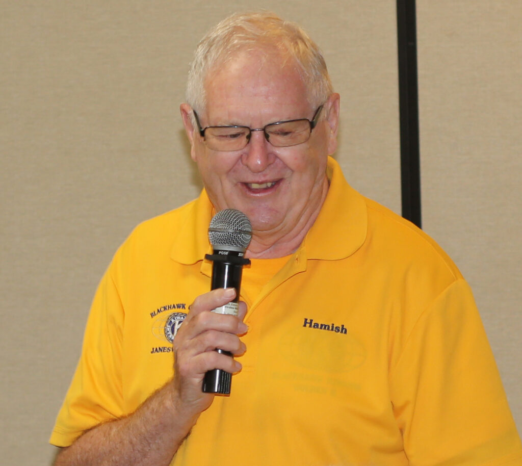 Tom Neumann spoke upon the Blackhawk Golf outing, tomorrow. It will be ‘best ball,’ with several challenges including shortest putt. Lunch at Mac’s, open to all members, will follow at 11:30.