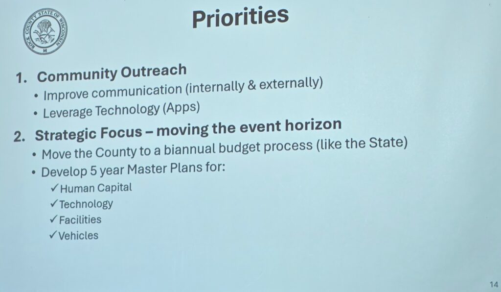 John appreciated the evaluation for the Rock County position was stringent. Rock County has only had two county administrators in the last 45 years.