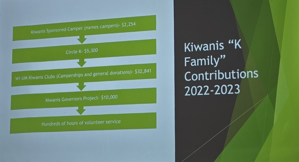 Carlee presented upon the camp and fielded member questions. Some of that included the size of the camp, which is 200 beds, 80 of which were new in 2021 thanks to Kiwanis.