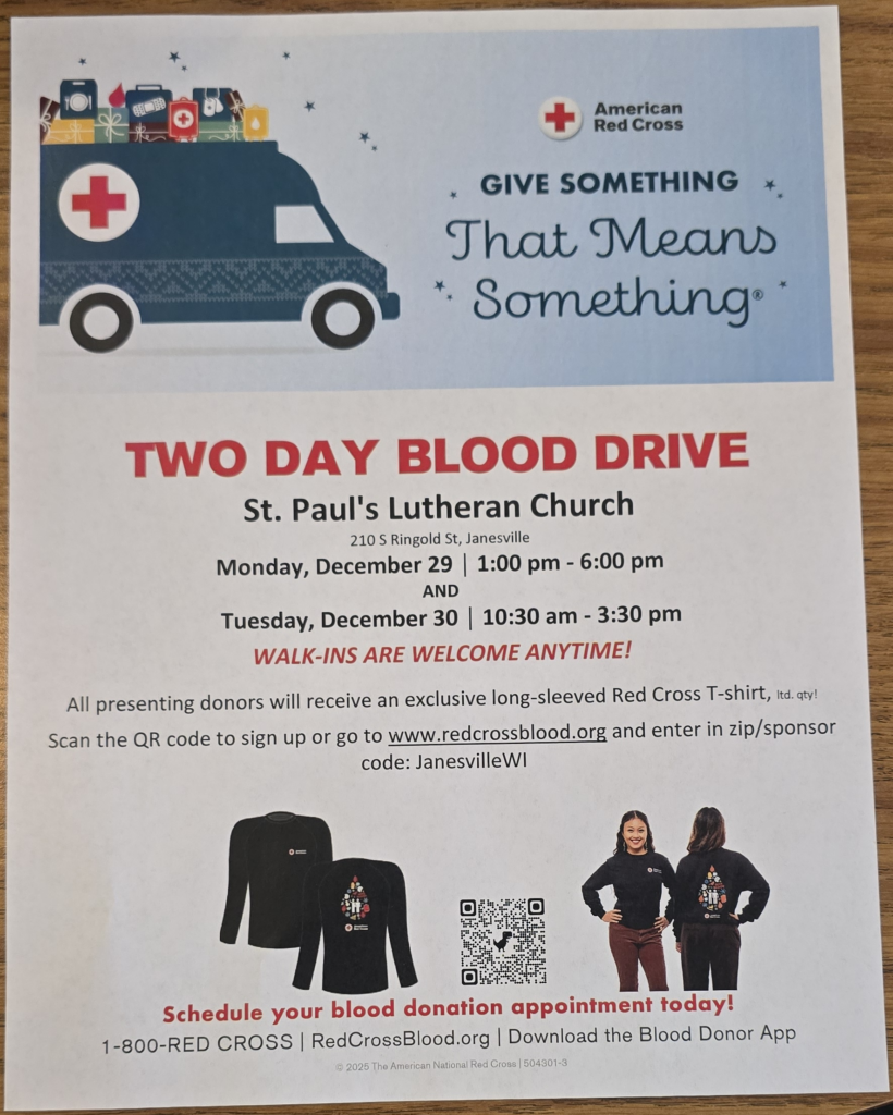 John Janes spoke upon the nation’s current blood shortage. Fliers are on the table for upcoming blood drives.